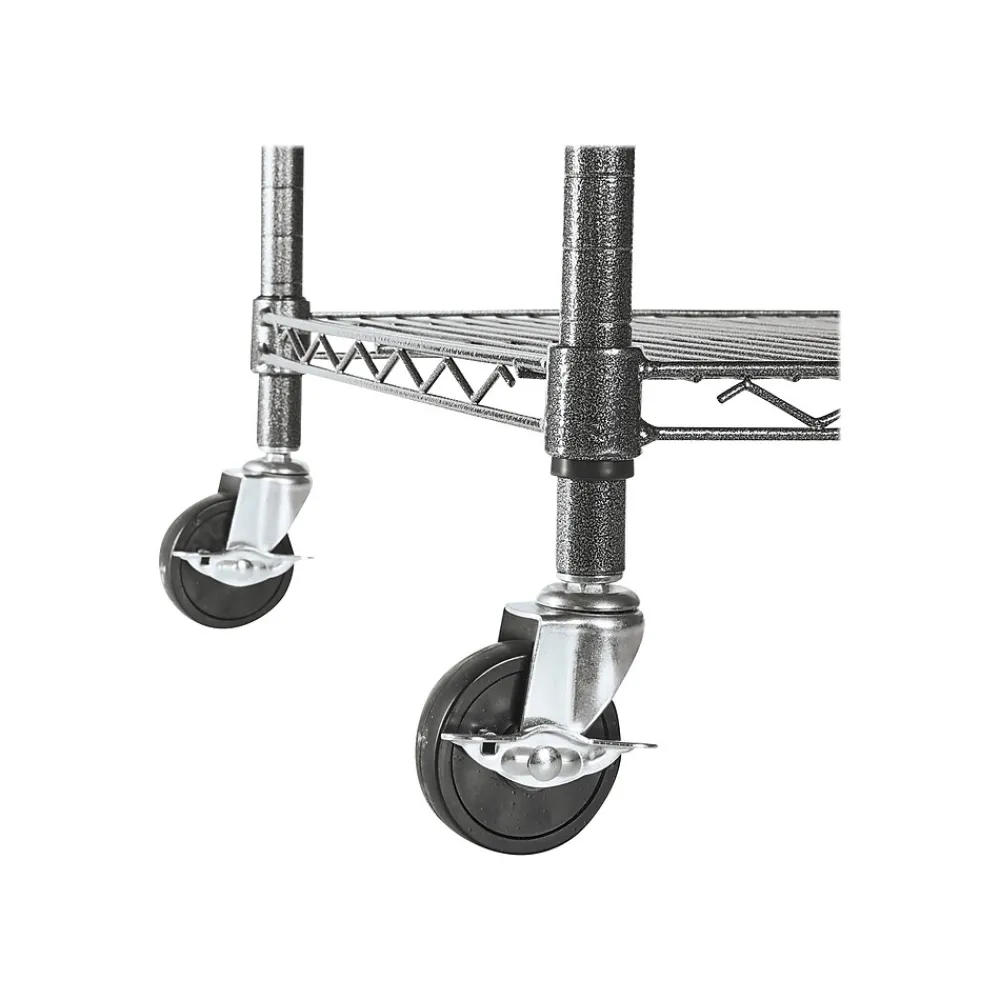 Get the extra storage you need with this versatile welded wire shelving unit. Each of the four shelves can support up to 600 evenly distributed pounds to meet medium-duty storage requirements, and the snap-together design is quick and easy to assemble. This Alera metal shelving unit has a corrosion-resistant finish to help it withstand wet environments, and the locking casters can be removed for extra sturdiness.