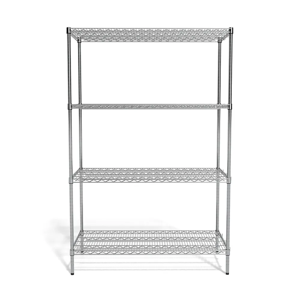 Store up to 700 pounds per shelf with this wire shelving unit. Welded steel wire construction lends durability and long-term use, and each shelf adjusts in 1-inch intervals so you can change the configuration as your storage requirements evolve. This 72-inch-tall Coastwide Professional four-shelf chrome wire shelving unit features an open design to keep items visible, while the chrome-plated finish resists scratches and dings.