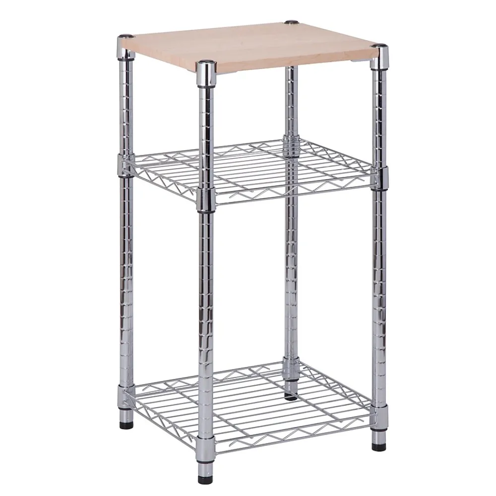 Honey-Can-Do SHF-09365 NSF Urban Shelving 3-Tier Adjustable Storage Shelving Unit, Chrome. Create visible, accessible storage space instantly with Honey-Can-Do industrial shelving systems. Contemporary chrome finish and 36″ steel frame make this unit the perfect blend of style and functionality. Durable enough for the mud room, garage, or commercial kitchen; this NSF-rated shelving for food equipment areas including refrigerators, freezers, and washing areas is capable of withstanding up to 200lbs per shelf. Adjustable shelves and stackable components allow you to change the configuration as your storage needs evolve. Combine multiple units to create a customized storage wall. The no-tool assembly allows you to construct in minutes a shelving unit that will last for years.