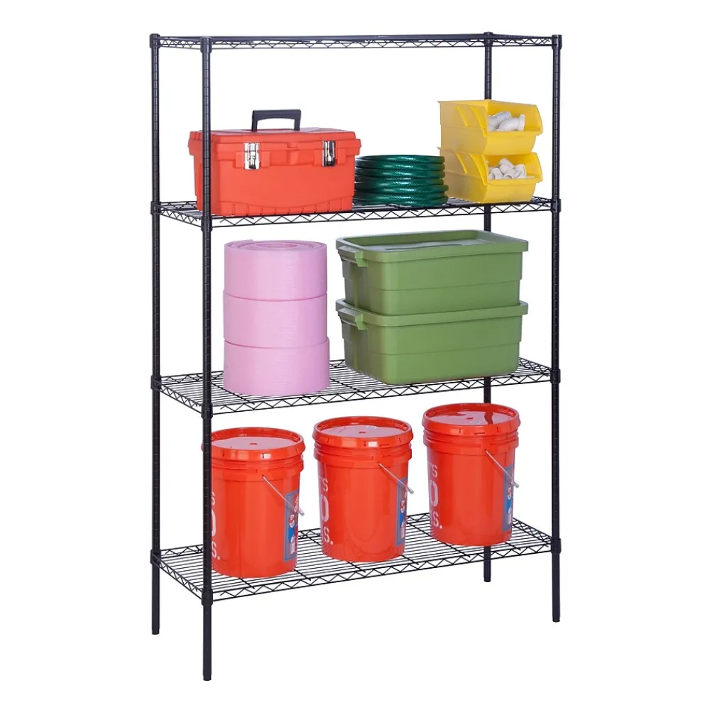 Honey-Can-Do SHF-05225 4-Tier Steel Urban Adjustable Storage Shelving Unit, Black. Create visible, accessible storage space instantly with Honey-Can-Do industrial shelving systems. Contemporary black finish and steel frame make this unit the perfect blend of style and functionality. Durable enough for the home, garage, pantry, or commercial kitchen; this commercial grade shelving is capable of withstanding up to 350lbs per shelf. Adjustable shelves allow you to change the configuration as your storage needs evolve. Combine multiple units to create a customized storage wall. The no-tool assembly allows you to construct in minutes a shelving unit that will last for years.