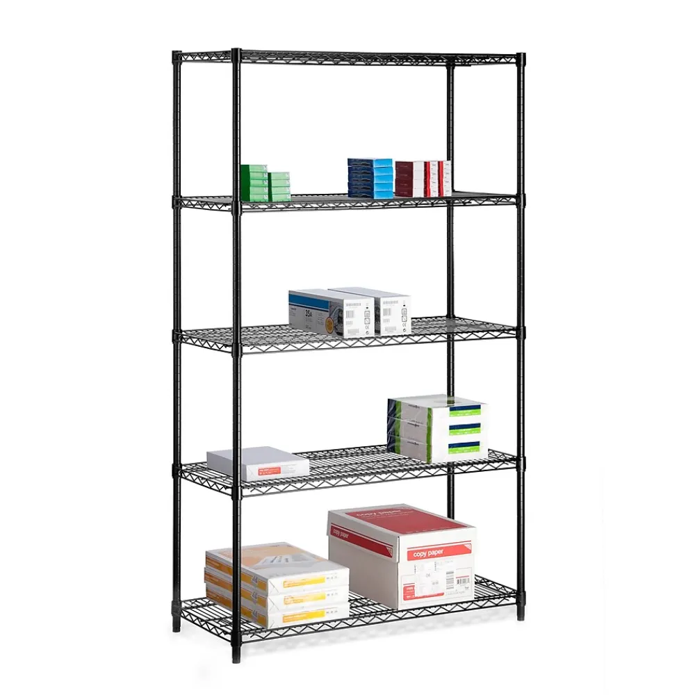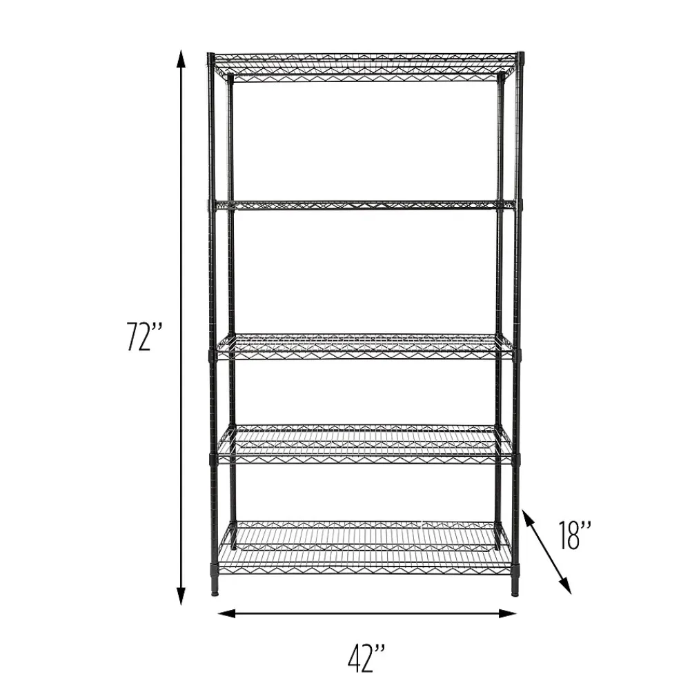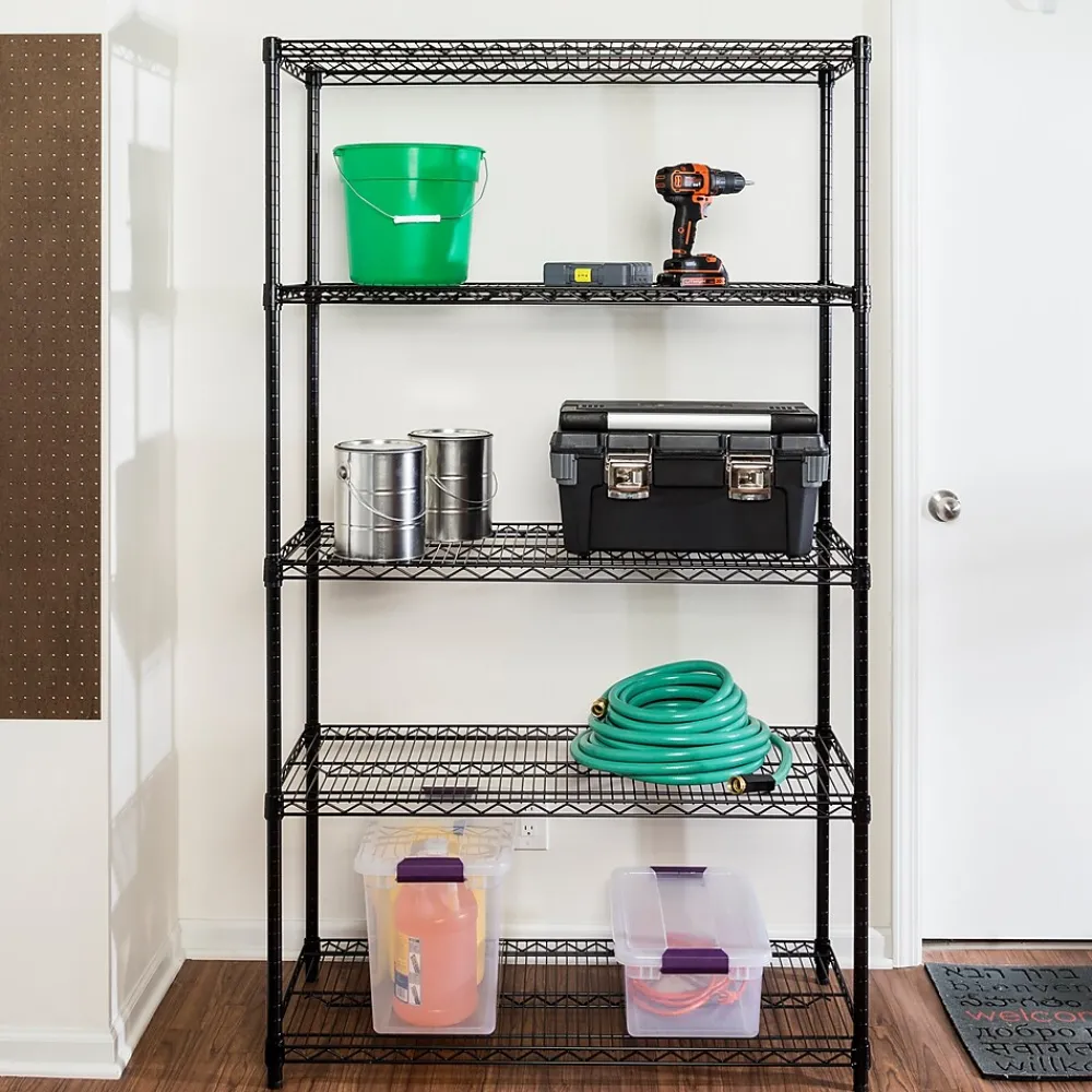 You love the versatility of shelving, if your shelving is versatile, that is. Well, it most certainly is with the heavy-duty 5-Tier Shelving Unit in Black. Maximize storage in the garage or any room of the house with this durable unit that can hold up to 800 pounds per shelf. Adjustable shelving heights is convenient for when shelving needs change or oddly-sized items arrive, like the large aqua deer statue that he just “had to have” from his last guys’ trip… hint, it’s going in the garage. Commercial-grade certification makes this the perfect kitchen, garage or closet shelving unit. Your shelving needs to keep up with you – we make sure it does.
