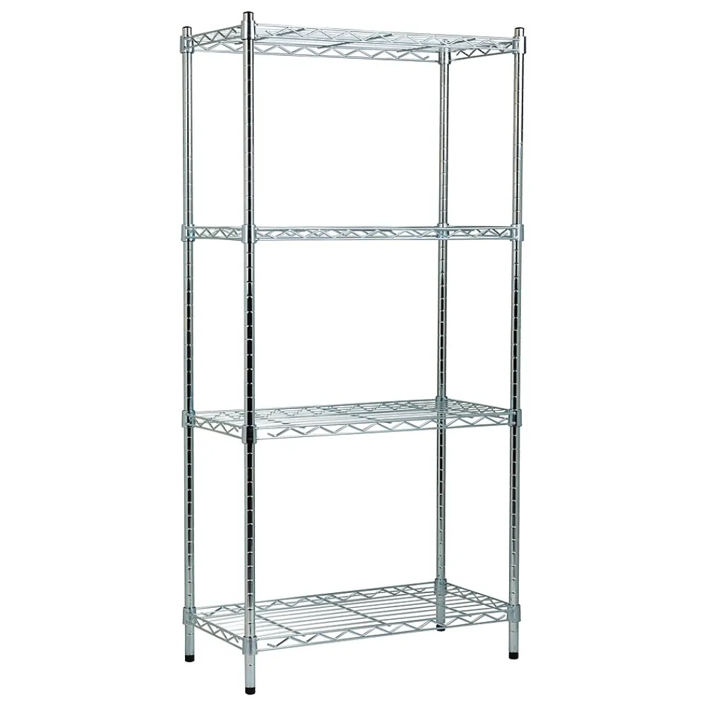 This industrial-strength adjustable storage shelving system is a versatile solution to help keep your spaces organized and clutter-free. Perfect for the kitchen, bathroom, garage, and even commercial spaces like restaurants and offices. The shelves are fully adjustable at 1-inch (2.5 cm) increments, allowing for the storage of a wide range of items, from large boxes to dishware.It’s easy assembly requires no screws or tools. Constructed with steel and coated with a chrome finish, it’s designed to resist rust, corrosion, and wear and tear, ensuring long-lasting durability.Despite its lightweight design at only 10.25 pounds (4.65 kilograms), each shelf can support an impressive 200 pounds (90.7 kilograms) of weight, offering robust storage capacity.This freestanding shelving system is an excellent choice for various settings. In commercial environments like restaurants or hotels, it offers reliable storage. It’s also ideal in office break rooms for storing dry goods, bathroom supplies, and toiletries. For home use, it’s perfect in the kitchen for storing small appliances or pantry items. With its versatility and durability, it’s a valuable addition to any space.