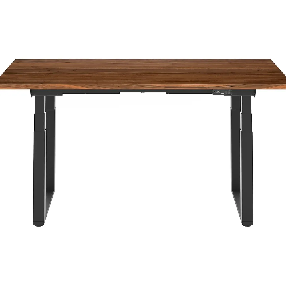 - Made with a solid wood desktop in a black walnut finish and a solid carbon steel base in black