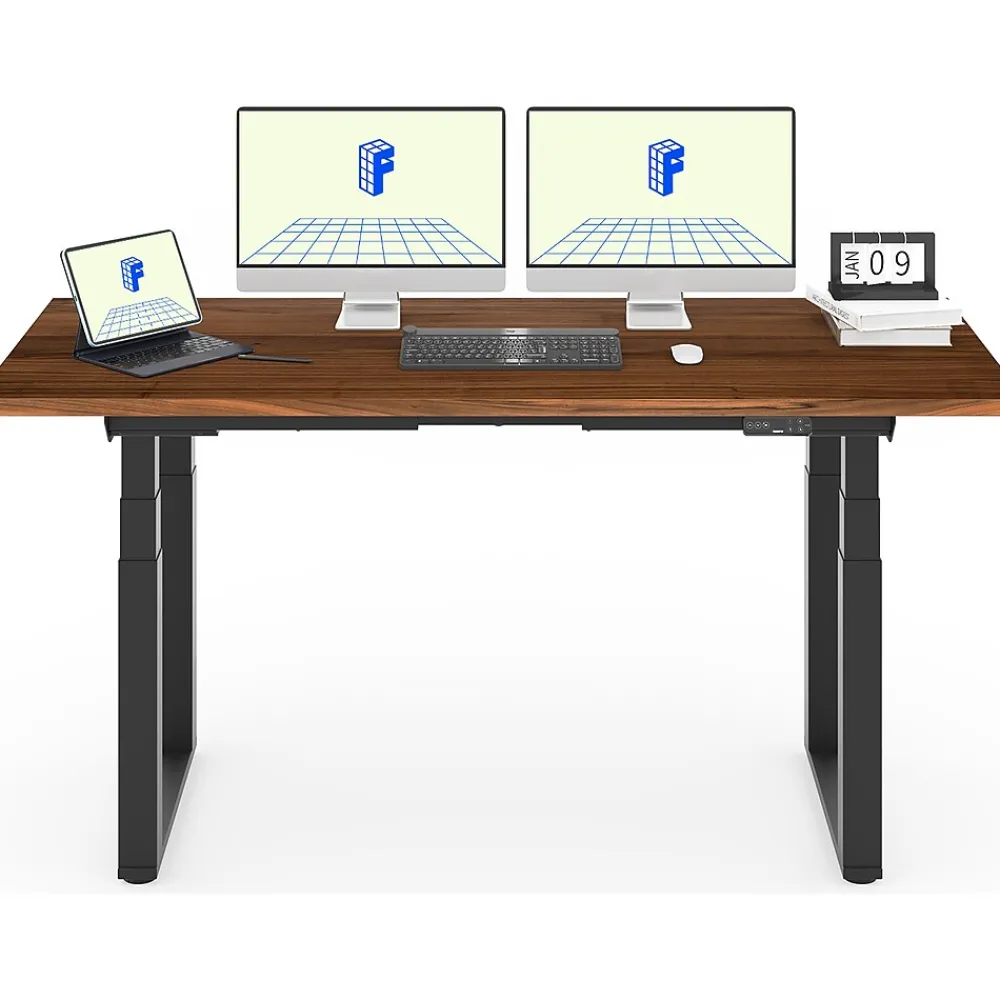 - Height-adjustable standing desk with extra-large desktop gives you more space to breathe and work