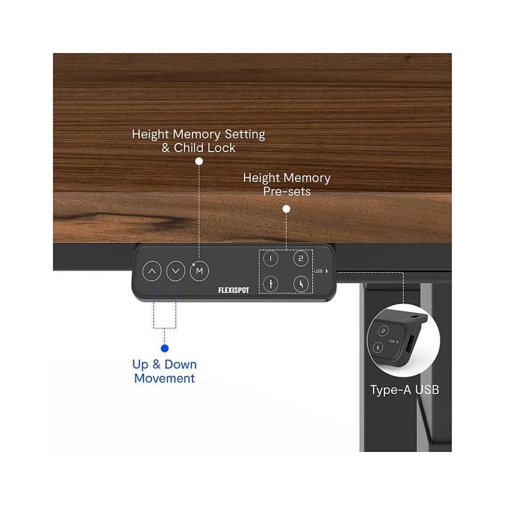 - Keypad supports four programmable height presets and offers you a better operation experience with the LED touch screen and USB charging port