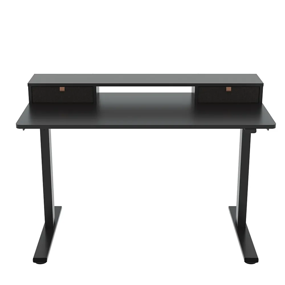 New to the series, the EC9BDO04B includes a shelf with 2 fabric storage drawers. The shelf system is not fixed to the table top, but has no-slip rubber feet which makes setup easy. The desk in this bundle is the EC9B which is a favorite for work from home or remote worker programs. It arrives partially assembled from the factory so it just requires a few steps to complete.