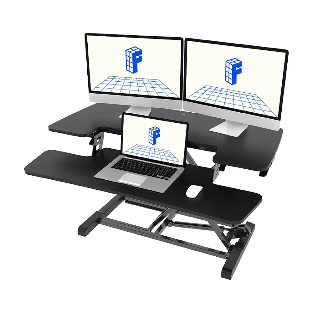 - Standing desk converter provides an easy way to transition between sitting and standing throughout the workday