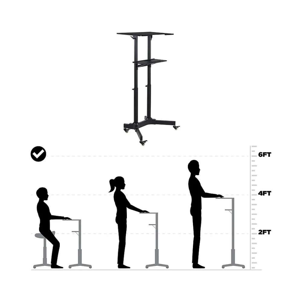 - MULTI-USE MOBILE STANDING DESK – This height adjustable rolling workstation can be used as a mobile laptop cart, portable podium, or presentation lectern.