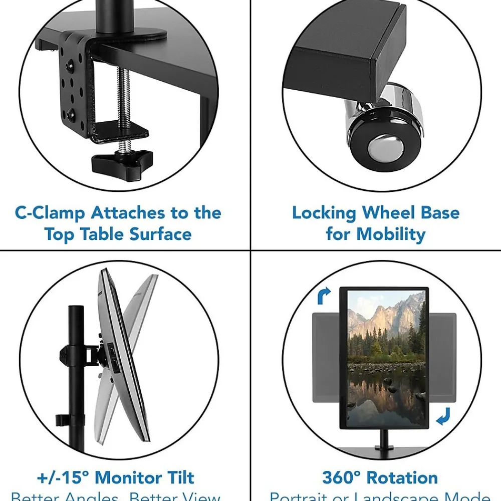 Mount-It! introduces the perfect height adjustable mobile stand-up desk. It is an ergonomic sit stand computer desk that allows you to raise and lower your work surface quickly and effortlessly to healthy sit-stand heights so you can work with more comfort. Stand your way to a healthier life, without having to spend hundreds of dollars more for stationary sit-stand desks.This model also includes a single monitor mount to free up even more space while giving you another ergonomic way to work comfortably by optimizing your monitor height. Ideal for use as a mobile computer/laptop station for at the office, home, hospitals, showroom, and classroom. Carefully designed platforms provide ample space for monitors, keyboards, mouse pad, a PC tower and a printer. Use with or without a monitor stand for an ergonomic layout. Easy-roll casters move in every direction, allowing it to be conveniently relocated from room to room. The locking casters allow the cart to be stationary or mobile when desired.