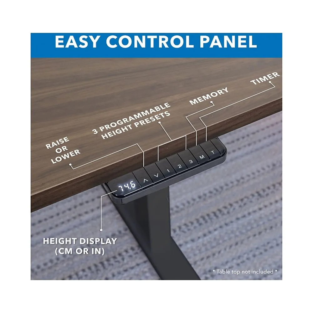 - Easy-to-use digital control panel with three programmable memory settings for your preferred sitting and standing heights