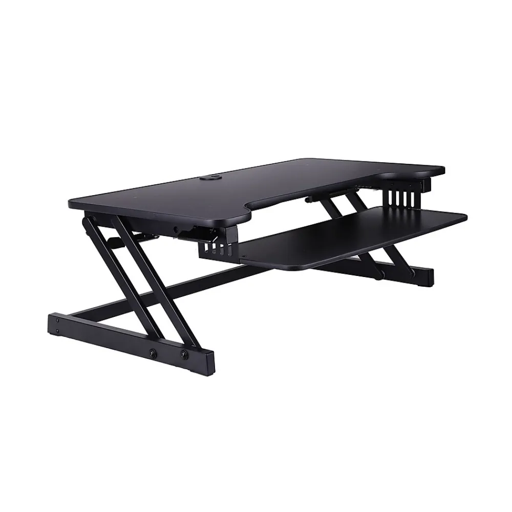 | Electric or Manual Features of the desk (Ex: Cable Management, Built-in USB Ports, Soft Close Drawers, etc.). | Quick Sit Stand Up Dual Monitor Riser, Gas Spring Assist Computer Workstation, Large Retractable Keyboard Tray |