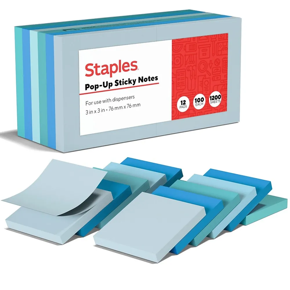 Write reminders and messages on these watercolor pop-up notes. These sheets have no lines, offering versatility and plenty of room to write whatever you need, while the pop-up design makes it easy to grab just a single note at a time. These Staples Stickies pop-up notes have 100 sheets per pad and come in a pack of 12, so stocking up is easy.