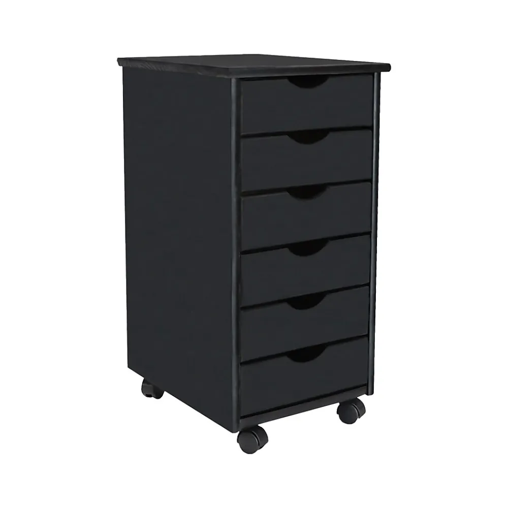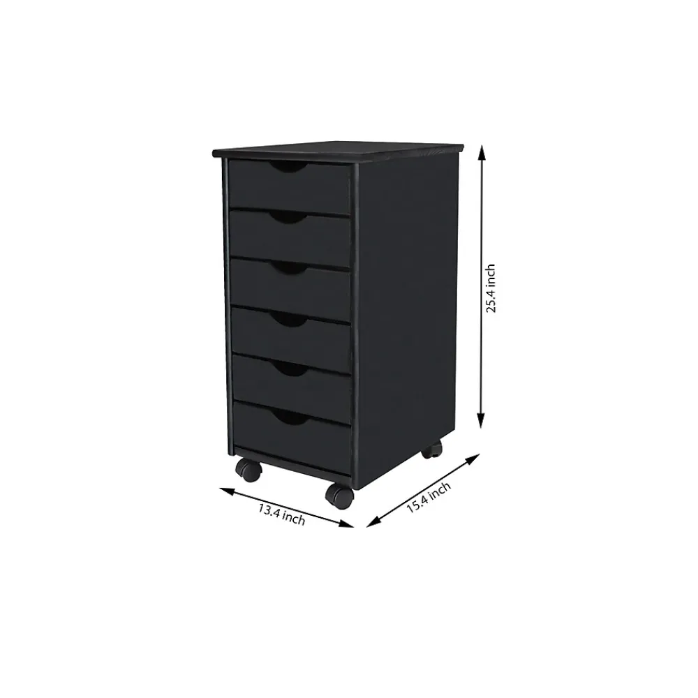 This six-drawer roll cart on wheels features deep drawers to hold reams of paper or drills. Perfect for project rooms, kitchens, garages, offices, or end tables.