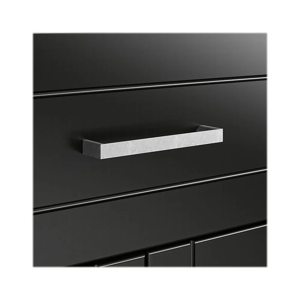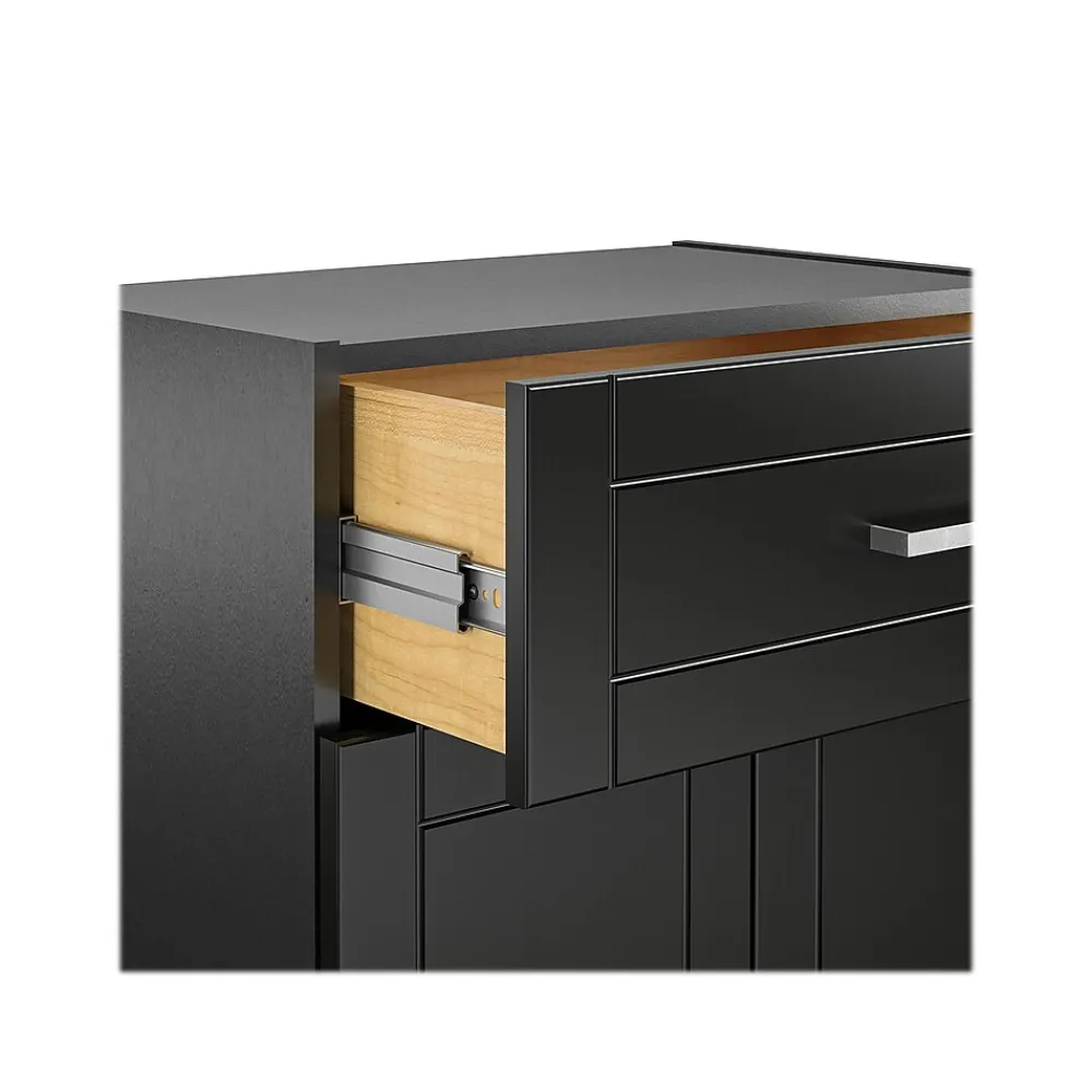 - Water-resistant black finish on the laminated MDF and particleboard makes this cabinet great for adding storage to any room in your home