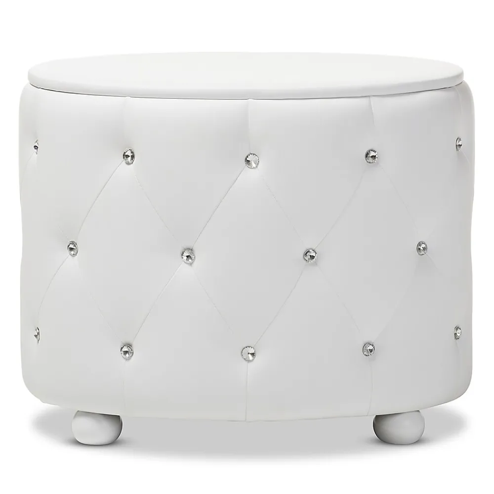 - Fully upholstered in white faux leather