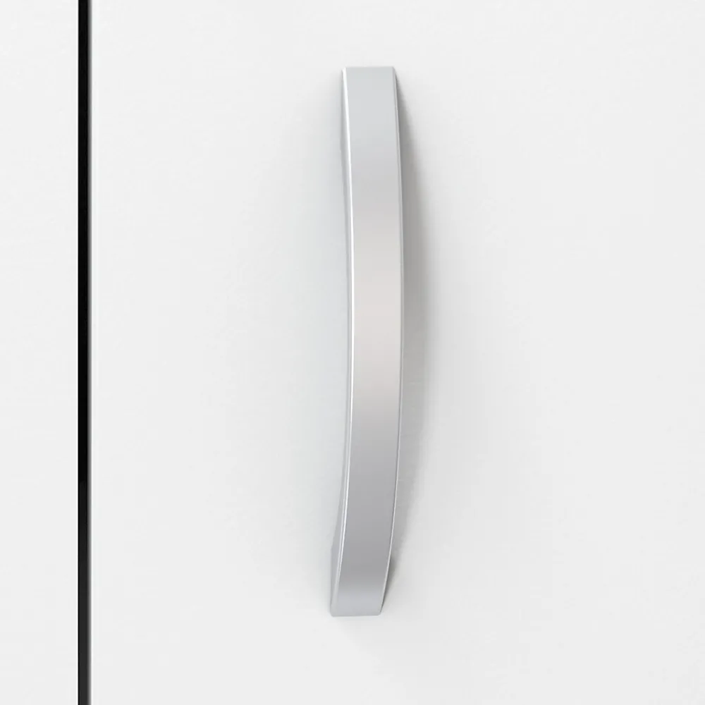 - Brushed Nickel hardware complements the White or Storm Gray finish to complete the contemporary look