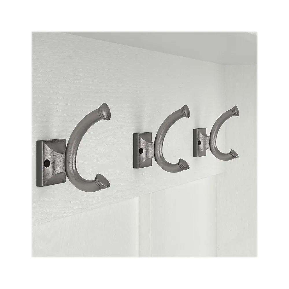 - Hall Tree includes three double-prong coat hooks in the front and one on each side for hanging jackets, hats, scarves and more