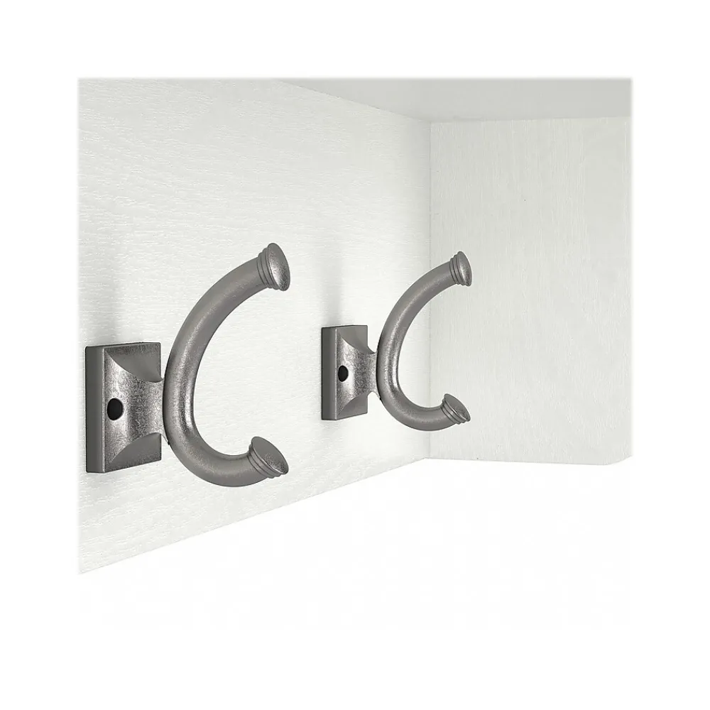 - Wall shelf includes four double-prong coat hooks in the front and one on each side for hanging jackets, hats, scarves and more