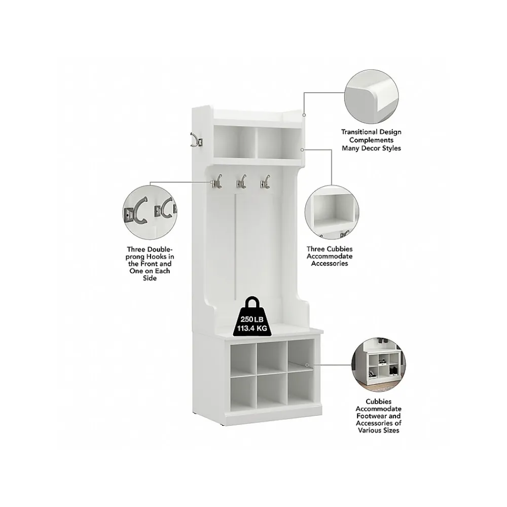 Storage Cabinets*Bush Furniture Woodland Full Entryway Storage Set with Coat Rack and Shoe Bench with Doors, White Ash (WDL013WAS)