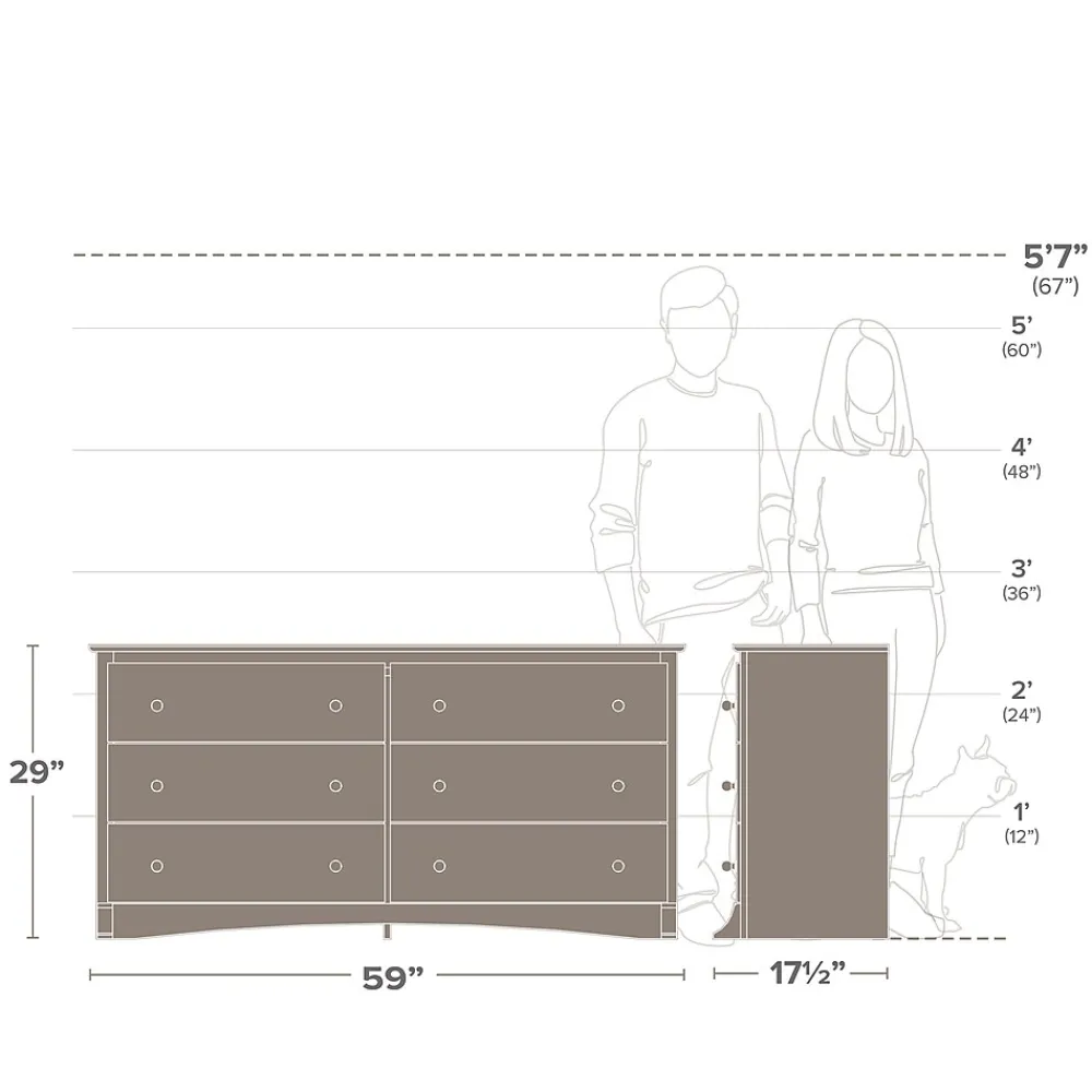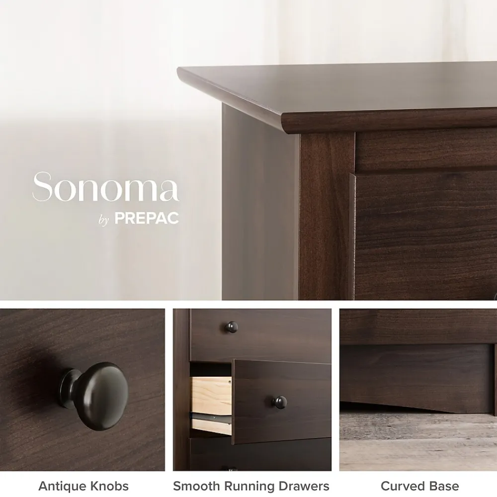 Prepac 6-Drawer dresser in espresso finish is constructed from CARB-compliant laminated composite woods which give an elegant look to any room. Drawer dresser has a sturdy top to pile on your books, cell phone, alarm clock, lamp and more.