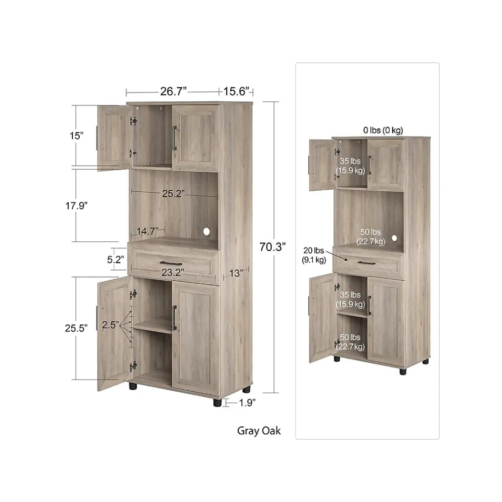 Skip the expensive coffee shops, and bring it all home with your System Build Dwyer tall coffee bar with one drawer and four doors. The bar features a rustic gray oak finish and clean modern farmhouse hardware. Simple yet essential in your home office or kitchen, with space to store everything you need to make the perfect cup of joe. Carefully crafted with modern European-style hinges, adjustable shelving, and durable side-mounted drawer slides for lasting enjoyment. Pair your coffee bar with the matching System Build Dwyer pantry (not included) to create the perfect kitchen combo.