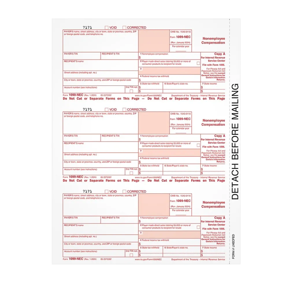 - 2024 1-Part 1099-NEC Copy A Forms for 150 recipients and 6 1096 forms