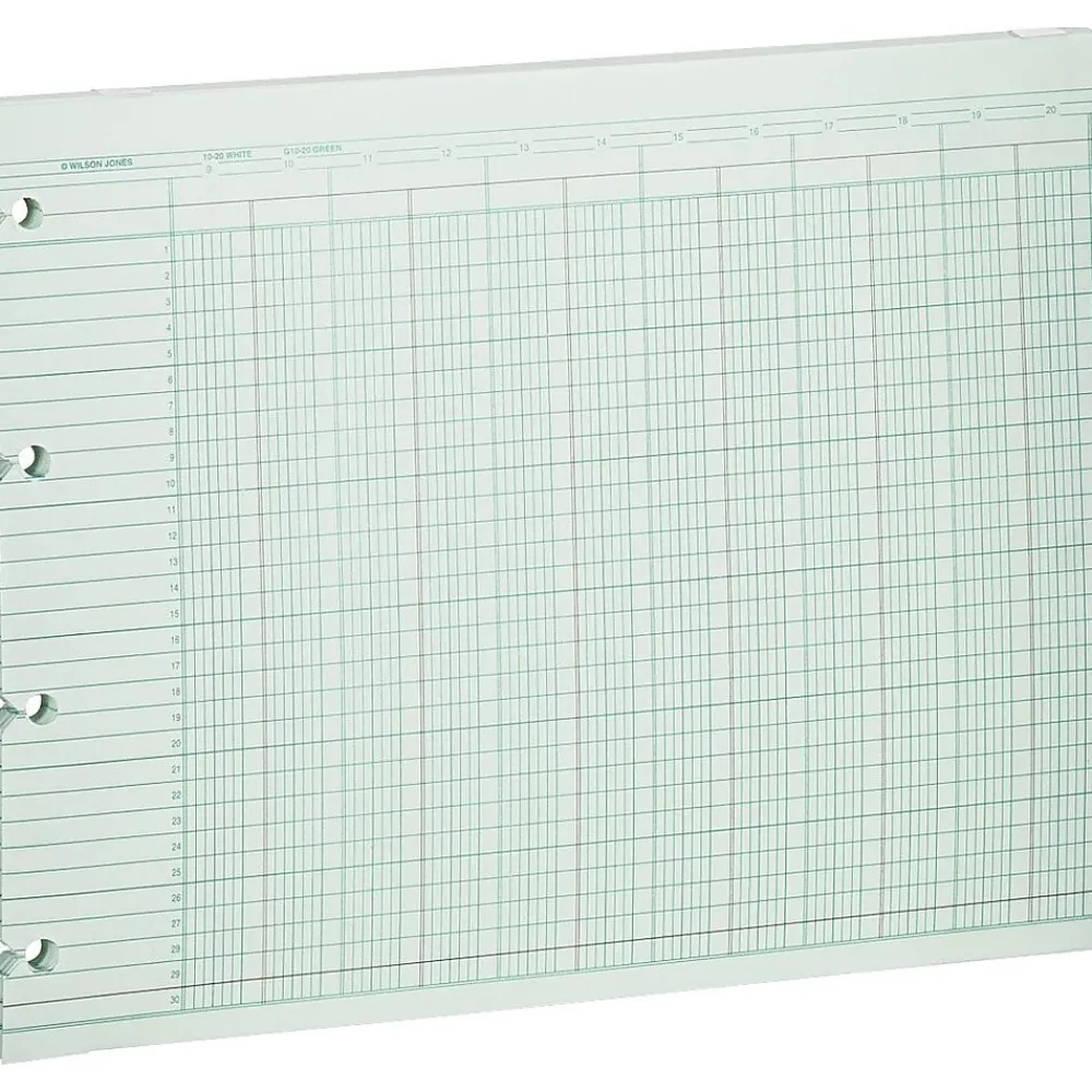 Wilson Jones® Double page columnar sheet includes 20 columns and is printed on both sides for convenience. 9 1/4″ x 11 7/8″ Sheet comes with slotted holes for easy insertion and removal of sheets without disassembling binders.
