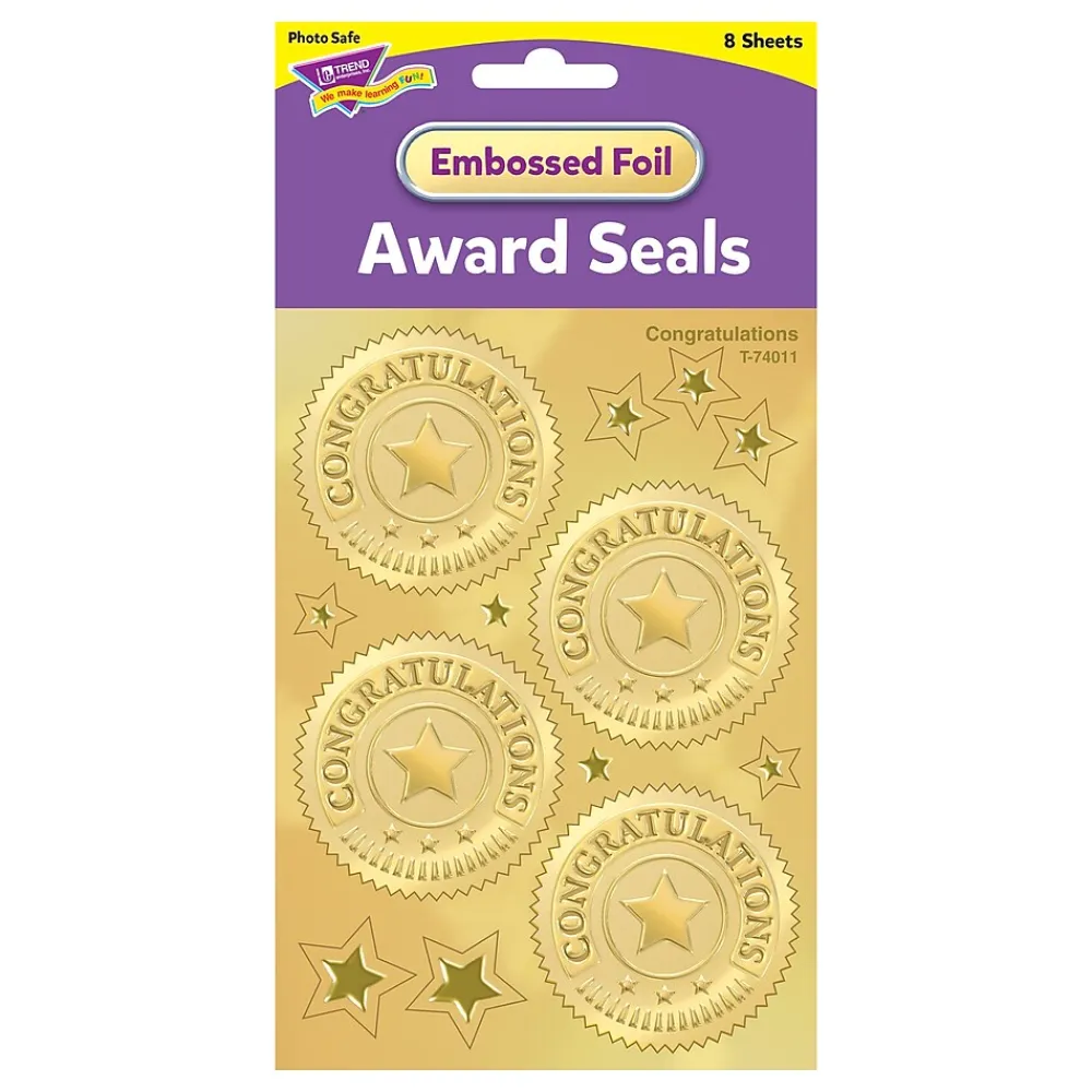 - Congratulations (Gold) Award Seals Stickers, Multicolored; Use for any classroom or school award