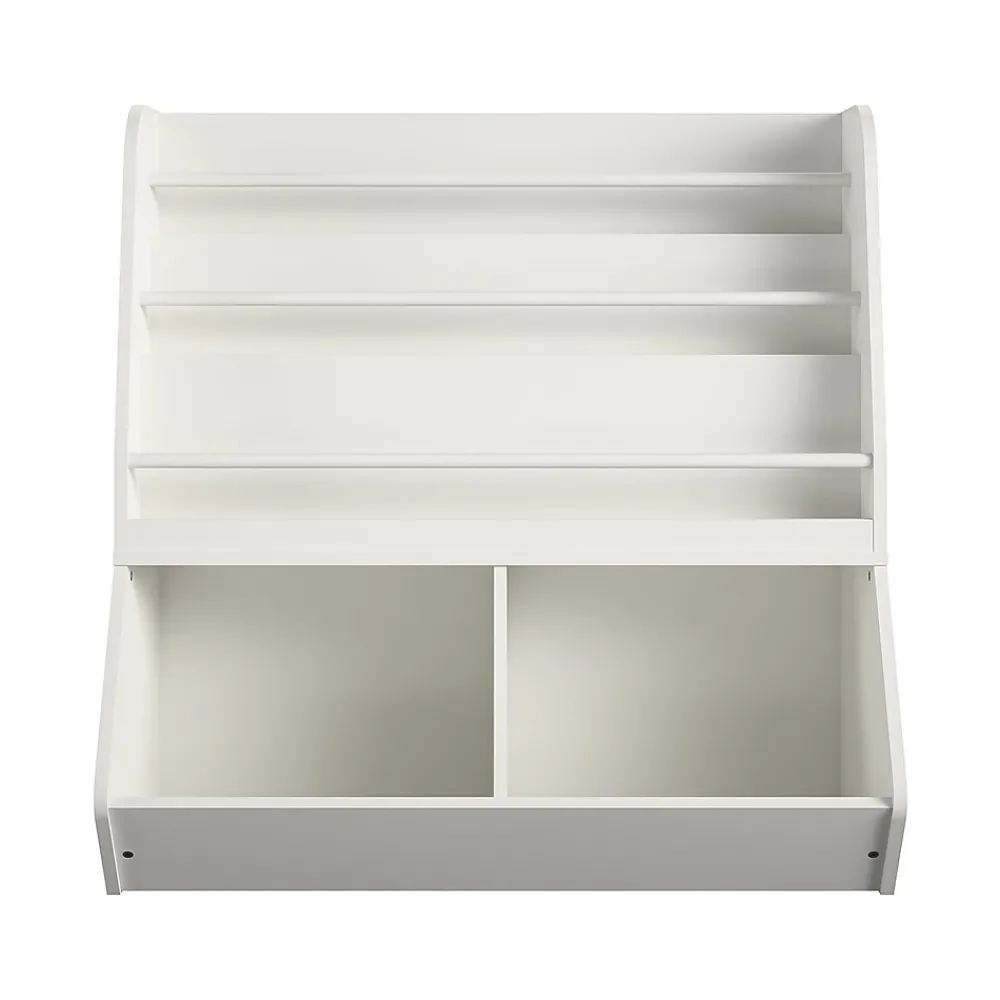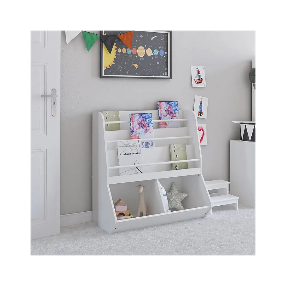 Don’t fight with all the clutter in your child’s room: simply store away their toys and games in the Ameriwood Tyler book and toy storage. This toy storage is great for storing stuffed animals, toys, and books and features curved corners for your child’s safety. Keep everything organized in the two large open compartments, and display their favorite books on the top three shelves for easy access. Each bookshelf features a rod to keep books in place and allow easy access for kids. White laminate pairs with both boys’ and girls’ rooms. The book and toy storage meets the CPSIA Juvenile testing requirements to ensure your child’s safety. The toy storage ships flat to your door and requires assembly upon opening. Two adults are recommended to assemble.