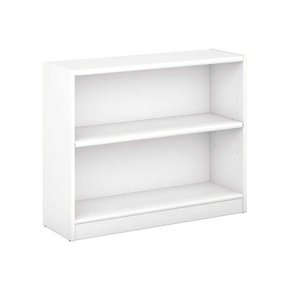 The Bush Furniture Universal 2 Shelf Bookcase features one adjustable shelf and a fixed bottom shelf for added stability and storage flexibility. Personalize your home or office with books, photos, plants and decorative accents with sturdy 1 inch thick shelves. Design extended wall storage, or place coordinating bookcases anywhere in your interior with seven finishes and three height options. Family-friendly wall attachment hardware included. You’ll find many uses for this heavy-duty small bookcase in your home office, bedroom or small business. Solidly constructed, the 2 Shelf Bookcase meets ANSI/BIFMA standards for performance and safety. Backed by a 1 Year Warranty.