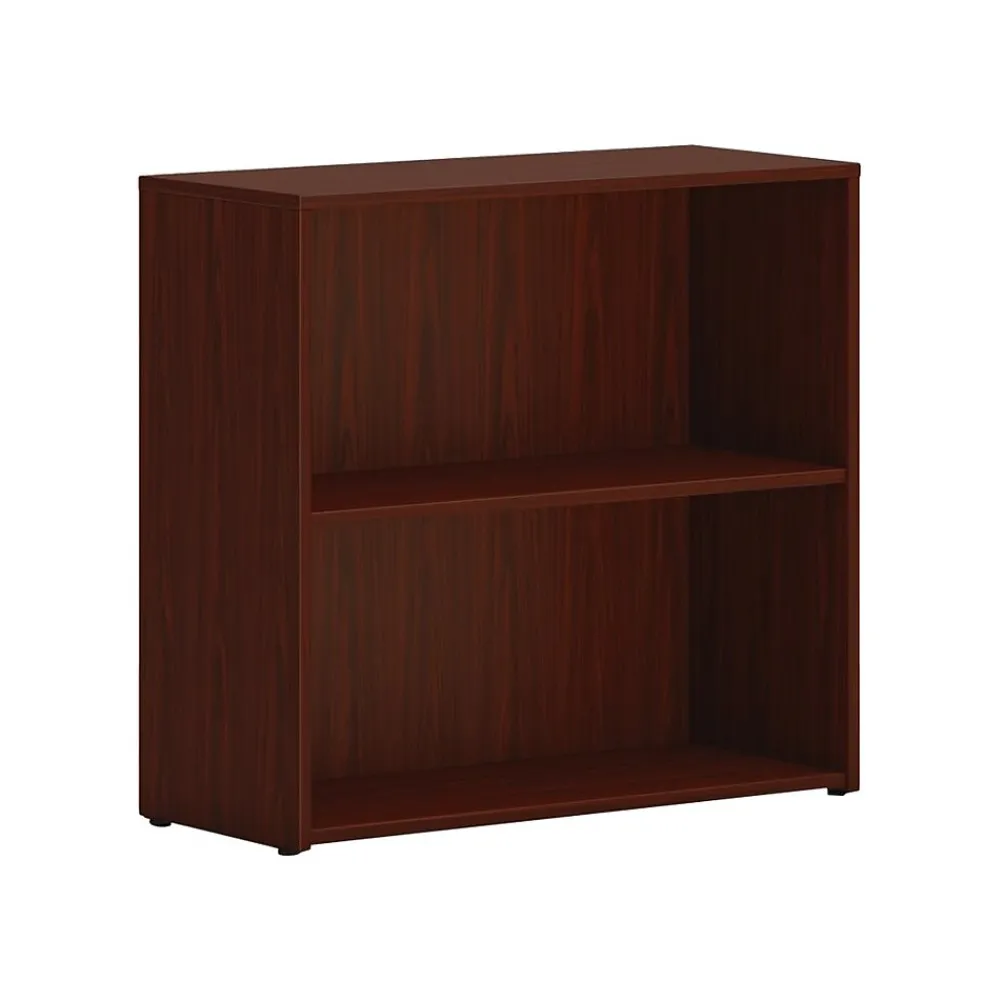 - Standard bookcase is made of woodgrain laminate and comes in traditional mahogany finish