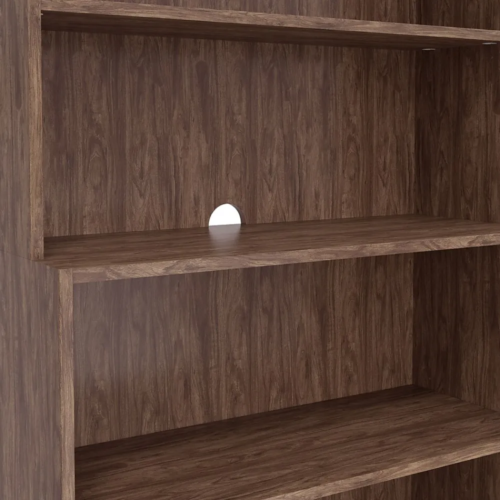 Personalize your office while enjoying increased functionality with this espresso bookcase. The five-shelf design provides ample space for books, family portraits and office supplies, while the center shelf features a grommet for cable management, letting you neatly position electronics and keep cords out of sight. This Union & Scale™ Essentials five-shelf espresso bookcase has a sleek modern appearance that works well with other pieces in the line.
