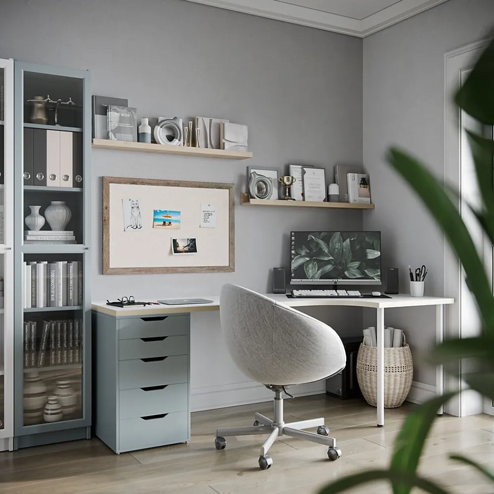 The U Brands decor linen bulletin board provides a natural, contemporary surface. The surface mirrors self-healing properties of natural cork. A rustic 1.5″ decorative MDF (medium-density fiberboard) frame adds durability and provides a designer look. Simplified mounting hardware allows for vertical or horizontal use. ISTA 3A packaging provides extra-supportive corrugate, which is highly resistant to damage.