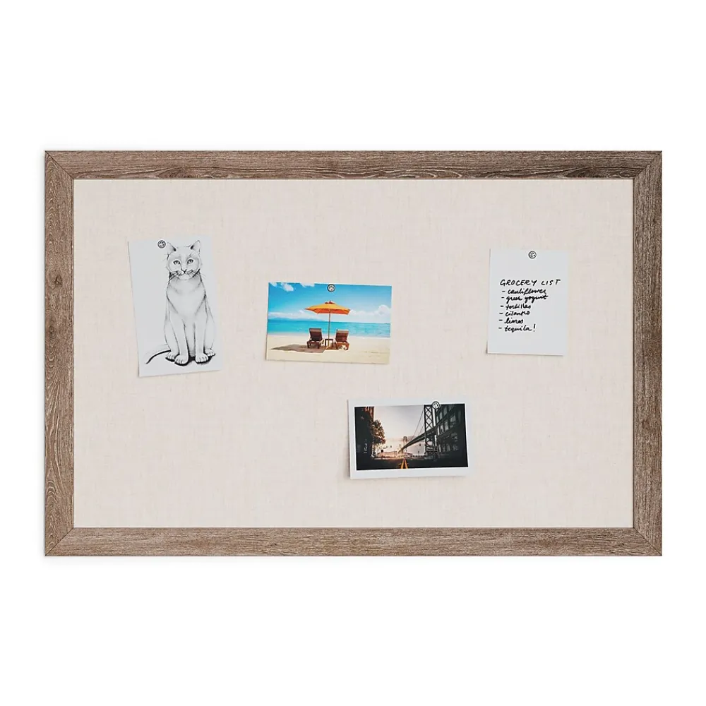 - Decor linen bulletin board provides a natural, contemporary surface