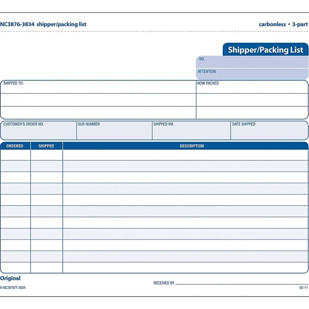 TOPS Snap Off shipper/packing list form is used to record what was ordered and what was shipped. Shipper/packing list form measures 8-1/2″ x 7″ and it contains 8 listing lines, black-print copies.