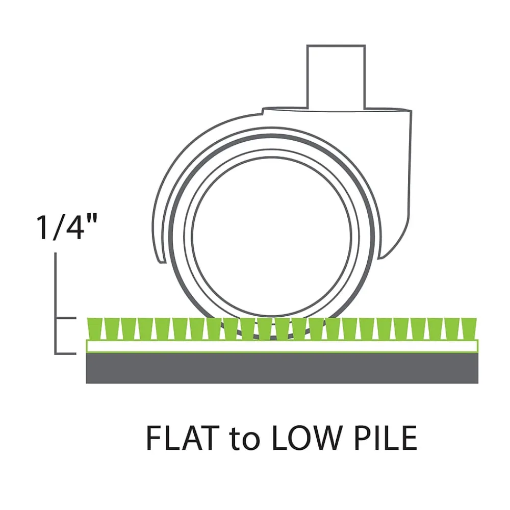 - Protects flat to low pile carpet up to 1/4″ thick (including padding depth) from chair caster wear and tear