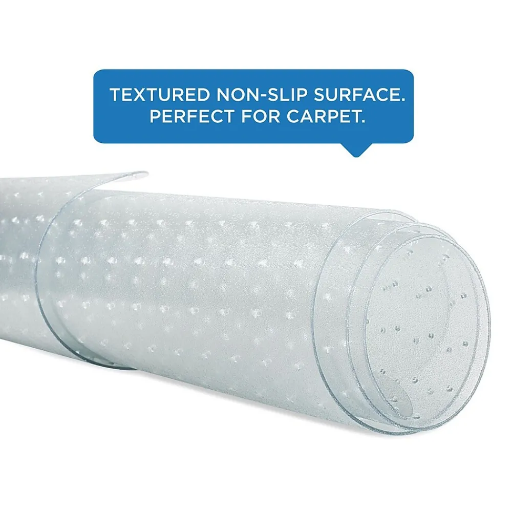 - DURABLE MATERIALS – The tough PVC used in this office chair floor mat will keep your floor protected from constant chair movement. Cleated bottom surface holds it firmly in place over carpet.