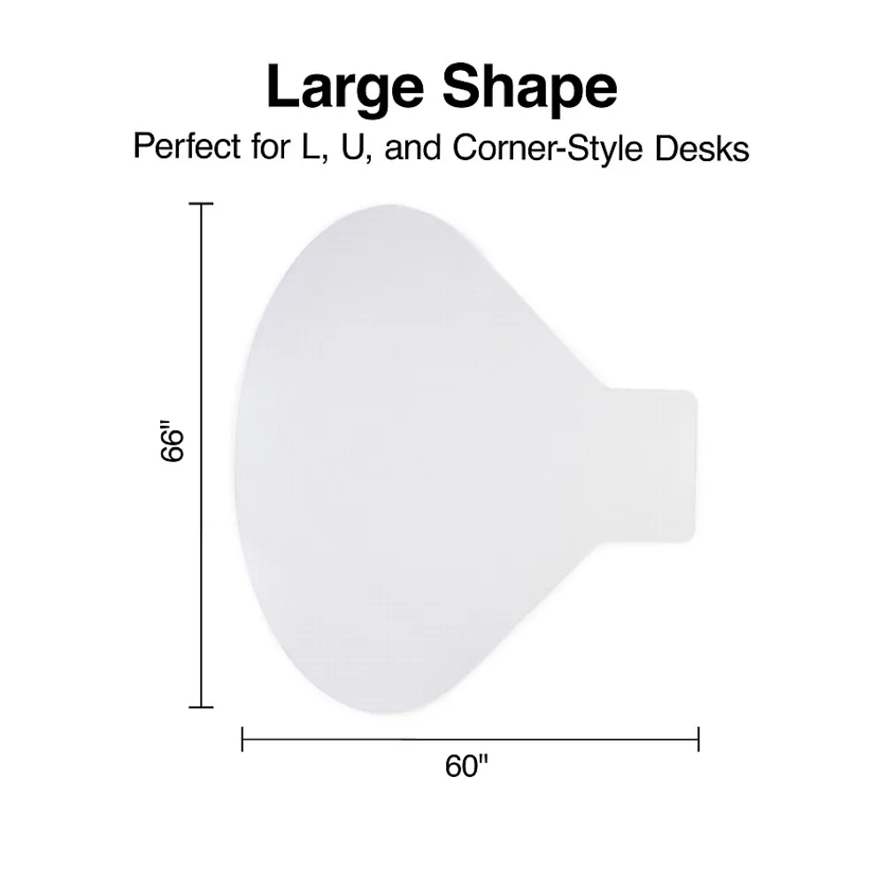 - Large shape perfect for L, U, and corner style desks, 66″W x 60″L x 0.085″H