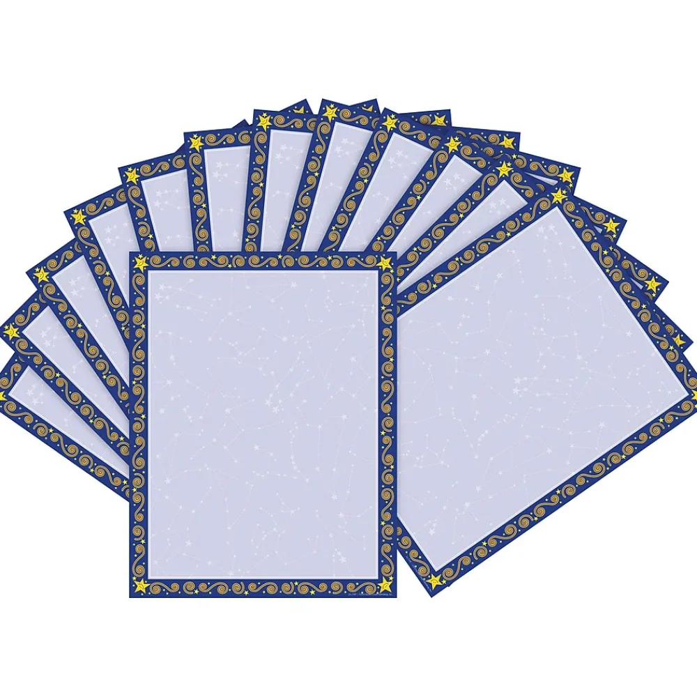 Barker Creek’s Reach for the Stars Computer Paper 2-Pack is affordable and beautiful! Use it vertically for writing letters home and other correspondence and then turn it sideways to create customized award certificates, notices…and more! The possibilities are limited only by your imagination! Each set includes 100 sheets of decorative paper that measure 8 ½” x 11”. This computer paper is compatible with most laser printers. Coordinating product available: Search Barker Creek Reach for the Stars.