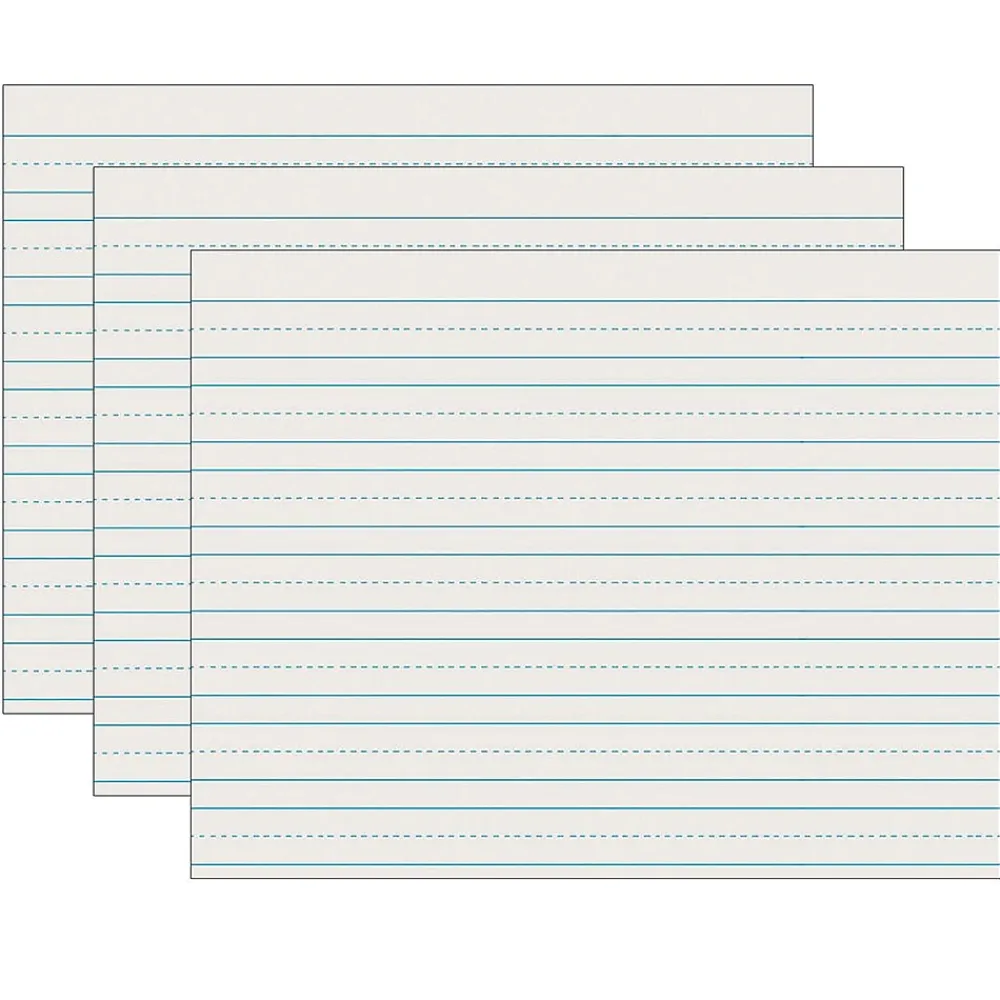 Clean White newsprint has a light blue ruling on both sides. Sheets are ruled 3/4″ the long way, and a 3/8″ dotted midline serves as a guide for controlled writing. Also includes a 3/8″ skip space, which allows room for letter descenders, making it great for handwriting practice and tracking students’ handwriting progress over time. Helps to build a solid foundation for students to write legibly and communicate effectively through writing. Each package contains 500 sheets. Measures 11″ x 8.5″. Recyclable. Sold as 3 packs for a total of 1500 sheets.