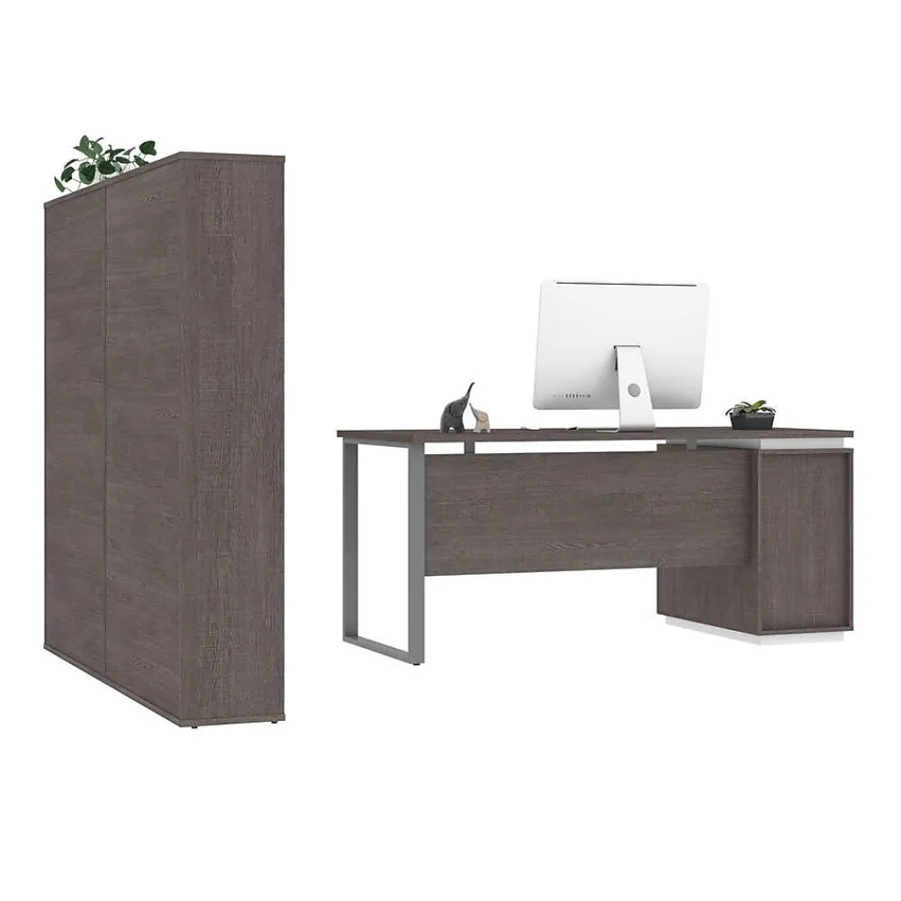 Thanks to this stylish desk set, you can furnish your office space in one shot. The desk’s work surface provides sturdiness and durability, while the U-shaped steel leg, aluminum handles, and layered desktop contribute to a modern look. The pedestal offers drawers to organize your documents and keep your office supplies close at hand. You can display books and decorative items on the storage cabinets’ shelves and conceal clutter behind the sliding doors. The storage cabinets can be paired side by side or placed separately in the room. Combine style and functionality thanks to this stylish bundle. This desk set is backed by the bestar 5-year manufacturer warranty.