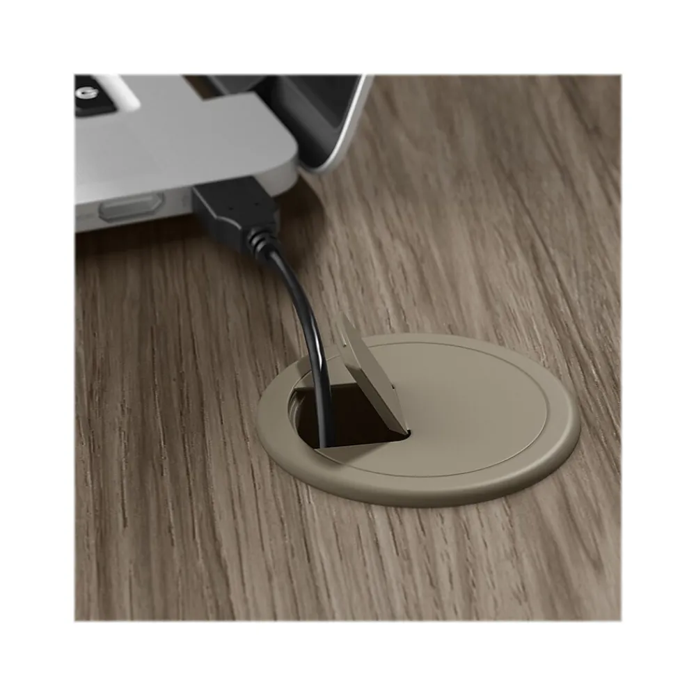 - Desktop includes three built-in wire management grommets to keep cords and cables out of the way