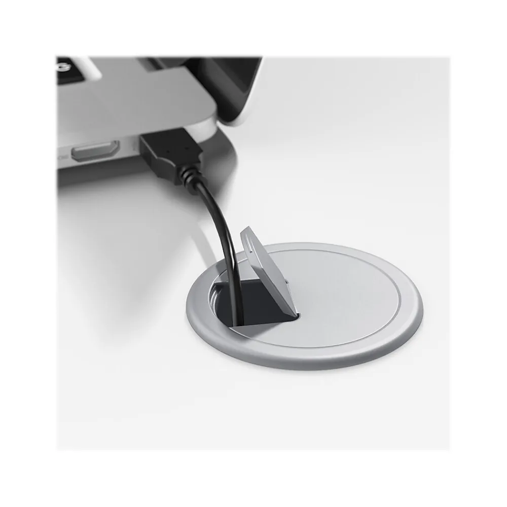 - Desk surface offers space to spread out together with the integrated cable management to conceal computer cords