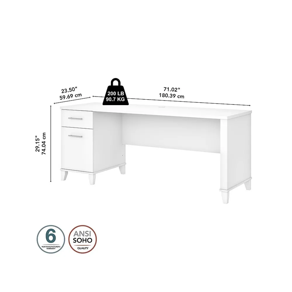 - Spacious 71″W work surface offers plenty of room to spread out with a computer and paperwork