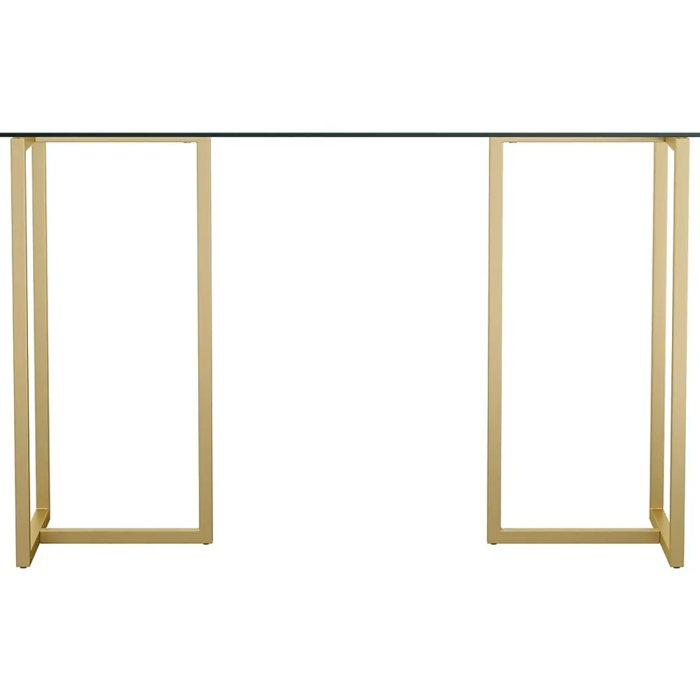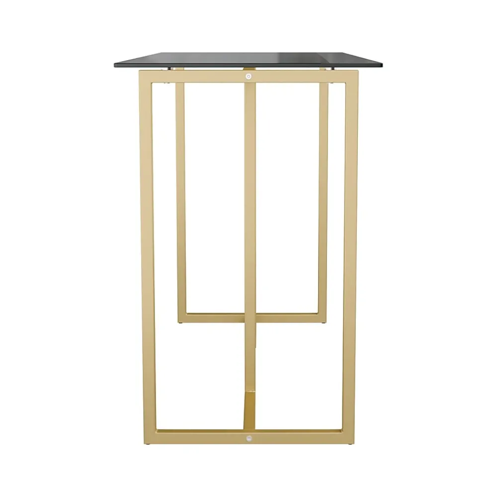 - Comes in modern style, featuring a 0.31″ clear tempered glass desktop and powder-coated steel frame in a polished brass finish