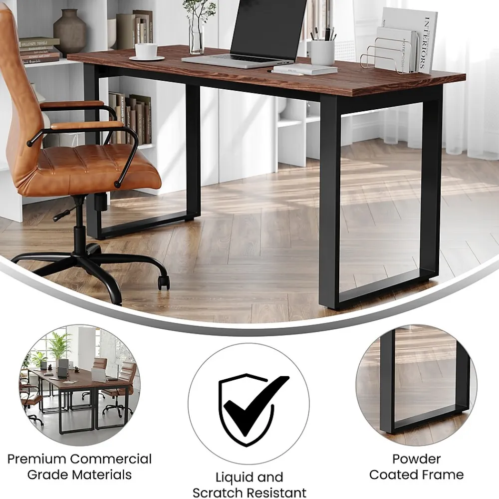 Foster big thinking during brainstorming sessions or encourage open communication and interaction between stakeholders during important meetings with this 60×24 commercial grade conference table. Available in timeless finishes that will blend well in any environment, this boardroom table will make a statement while providing ample space for multiple guests. The liquid and scratch-resistant 1 inch thick table top with a durable laminate finish on both sides and PVC edging increases durability for long-lasting use. The heavy-duty, powder coated, U-frame steel base comes with included hardware and easily attaches to the underside of the table into the predrilled holes. This conference room table holds up to 300 lbs. static weight, and features adjustable floor glides ensuring a level surface. Assembly takes less than 10 minutes and cleanup is easily achieved with a damp cloth.