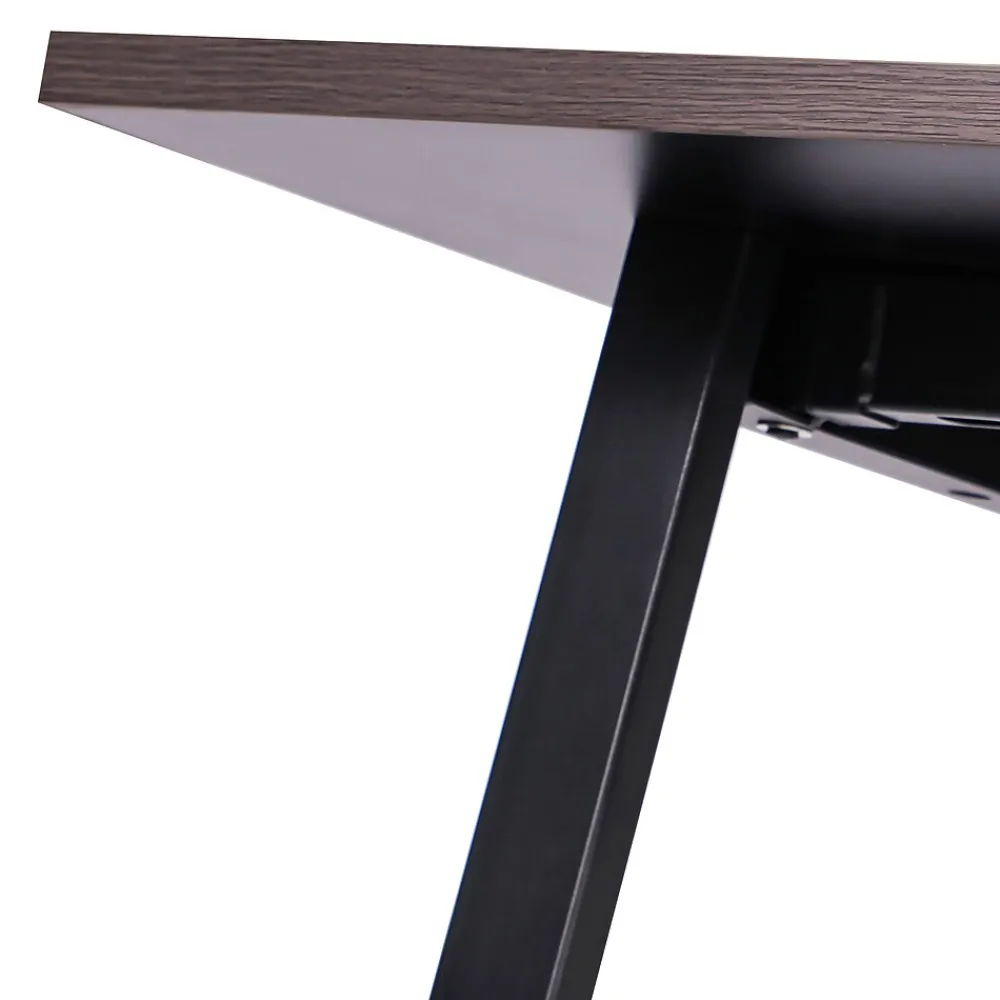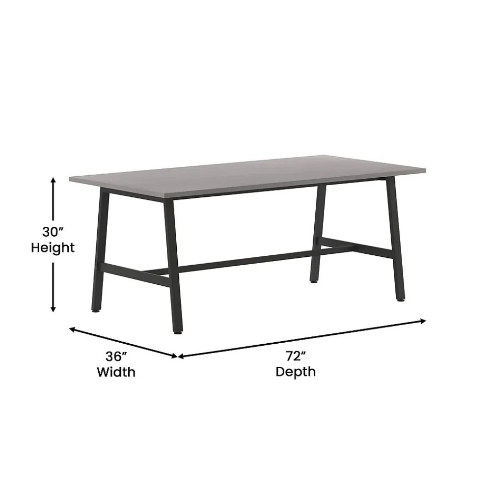 Foster big thinking during brainstorming sessions or encourage open communication and interaction between stakeholders during important meetings with this 72×36 commercial grade conference table. Available in timeless finishes that will blend well in any environment, this boardroom table will make a statement while providing ample space for multiple guests. The liquid and scratch-resistant 1 inch thick table top with a durable laminate finish on both sides and PVC edging increases durability for long-lasting use. The heavy-duty, powder coated, A-frame steel base comes with included hardware and easily attaches to the underside of the table into the predrilled holes. This conference room table holds up to 300 lbs. static weight, and features adjustable floor glides ensuring a level surface. Assembly takes less than 10 minutes and cleanup is easily achieved with a damp cloth.
