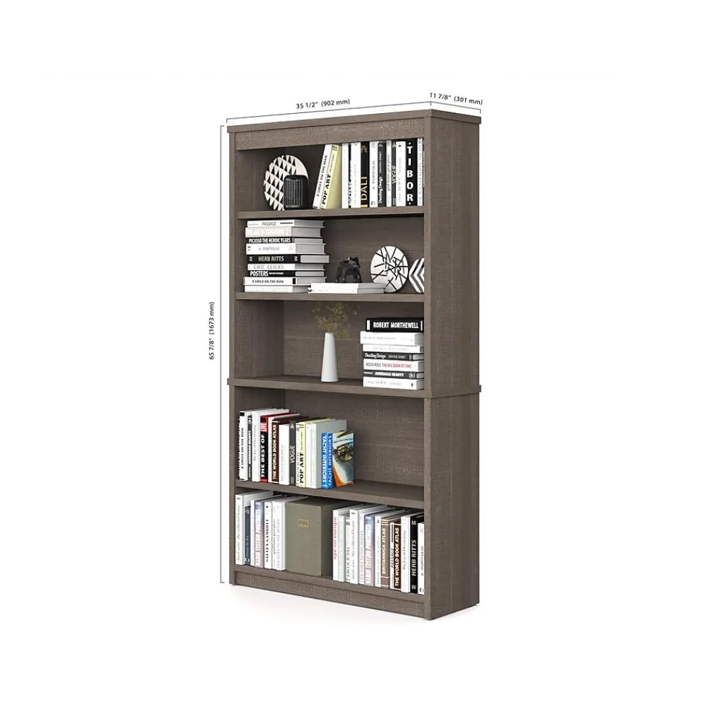 - Assembled dimensions: 66.5″H x 66″W x 95.5″D computer desk with hutch, 29.63″H x 28.38″W x 19.63″D lateral file cabinet, 65.88″H x 35.5″W x 11.88″D bookcase