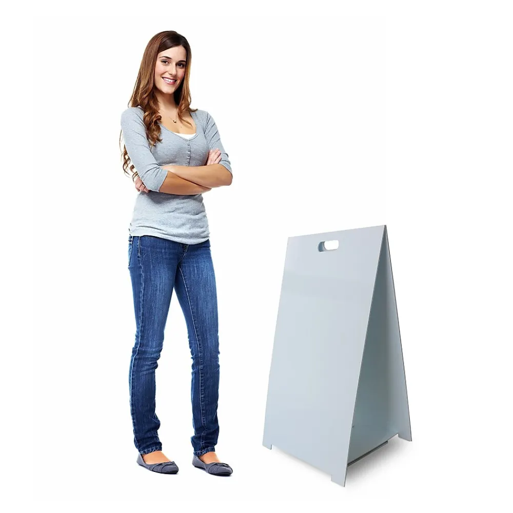 This Flipside easel is the perfect sturdy and lightweight solution for displaying announcements, menus, messages, and much more. Constructed from 100% recycled and recyclable corrugated plastic, it is easy to transport and folds flat for storage.