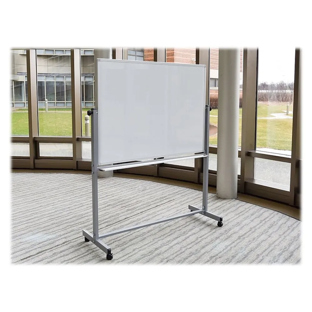 Ensure writing is easily visible with this double-sided whiteboard. The magnetic design makes it simple to display flyers, posters, and other documents, while the durable aluminum frame provides added sturdiness. This Luxor whiteboard is dual-sided for extra writing space and comes with four casters, allowing for quick repositioning or convenient transportation to different rooms.